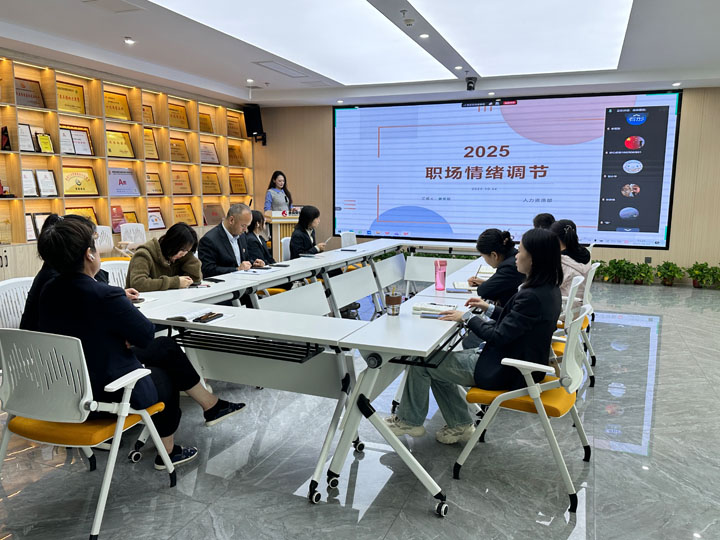 为提升员工情绪管理能力,营造积极和谐的职场氛围,10月17 日下午,陕西惠森后勤管理服务股份公司在搜宝中心会议室组织开展了《职场情绪调节》培训工作。本次培训采用现场及线上双模式,覆盖各部门、子公司及各保障区管理岗、职能岗员工与基层管培生。培训由人力资源部培训专员姜笑甜担任主讲。
