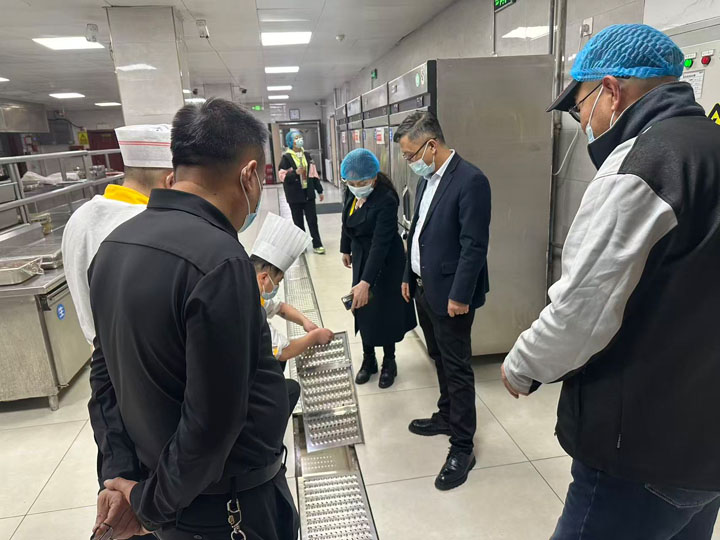 评定现场,专家组以“严谨、细致、客观”的原则,通过查阅资料、现场核查、随机提问等方式开展工作。在食材溯源环节,专家组仔细核对供应商资质文件、食材检验报告及采购台账,对公司“索证索票全流程电子化存档”“重点食材区块链溯源”的管理模式给予肯定;走进后厨,明厨亮灶监控系统实时覆盖操作区,食材分区存储标识清晰,刀具、砧板按色标管理,操作员工穿戴规范,这些细节充分展现了公司对食品安全管控的专业性;在餐厅服务区域,专家组体验了从点餐到用餐的全流程服务,对员工主动问询、及时响应的服务意识,以及餐厅环境清洁度、餐具摆放标准化等方面表示认可。针对各餐厅“营养定制餐食”、“应急餐食保障方案”、“减脂餐”等特色服务,专家组也进行了深入了解,并提出建设性指导意见。