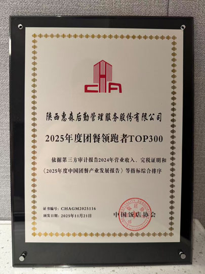 此次全国团餐领跑者TOP300评选,采用中国饭店协会“餐饮业领跑指数”评价体系,从企业经营规模、2024年度营收效益、服务创新能力、社会责任履行及食品安全管理五大核心维度开展综合评审,不仅明确要求申报企业年度营收,更严格核查近三年无重大食品安全事故、无违规经营记录,最终产生的榜单被视作全国团餐领域高质量发展的“风向标”。惠森公司能够从众多参评企业中脱颖而出,既是行业对其二十余年专注后勤服务领域的认可,更是对企业在规范运营、品质保障、客户服务等方面硬核实力的高度肯定。