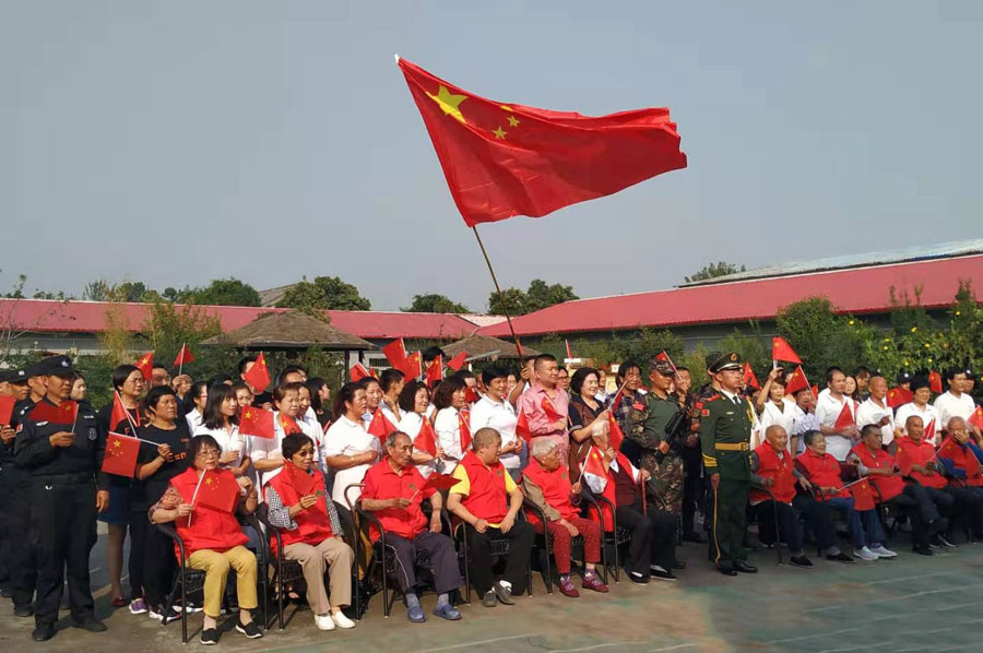 9月30日上午,陕西惠森实业集团在基地园区举行神圣且庄重的升旗仪式,在场的百岁老人、93岁共和国勋章获得者及公司领导与全体工作人员约100余人参加仪式,共同表达对党的无限热爱和对伟大祖国的美好祝福。