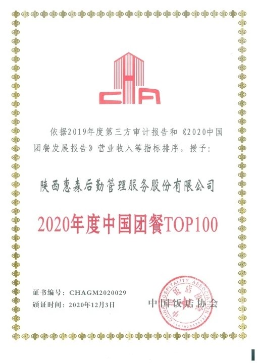 惠森后勤与服务单位一道排除万难、共克时艰,保持主营业务基本稳定,在重大自然灾害面前砥砺前行,荣获中国团餐百强企业称号。7月份又顺利完成股改,在陕股交新四板鸣锣上市,步入资本经营轨道。