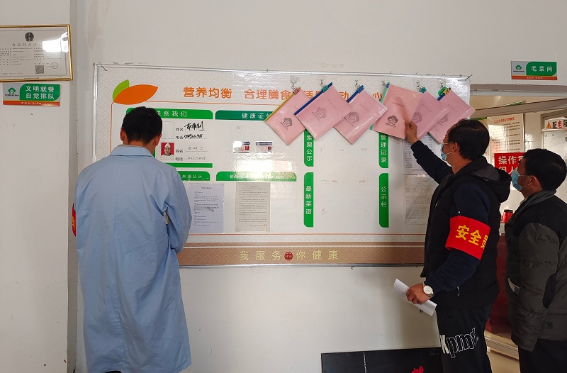 安全检查期间,重点对“3·15”晚会曝光的企业原料,餐厅库存食品及原材料进行排查,杜绝对问题原料,过期、变质食品进行售卖。同时还检查了餐厅员工办理健康证、索证索票的落实情况、食品的留样记录、餐厨废弃物处置情况、食堂的环境卫生状况等内容。