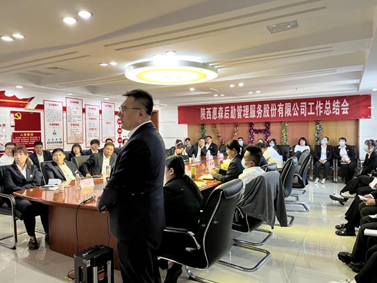 9月25日,惠森后勤股份公司在红柳林保障区隆重召开2022年第三季度工作总结会议。惠森后勤股份公司总经理孟敏、各分管副总、保障区负责人、2022届管培生等相关部人员约40余人参加本次会议。