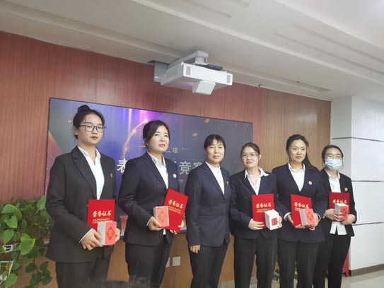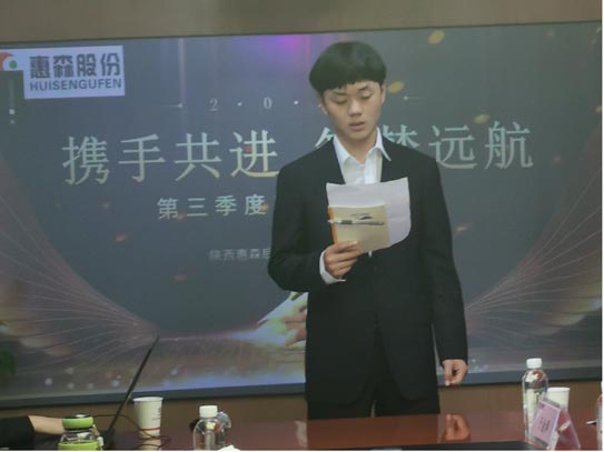 会议期间,公司还对本次知识竞赛获奖人员进行表彰,副总经理员妮为获奖人员颁发奖品和证书,并嘱咐大家要保持继续学习的势头,再接再厉。随后,红柳林、韩家湾、神南产业管培生依次生进行发言,汇报近期工作,大家纷纷表示:在基层学习了许多物业、餐饮方面的相关知识,眼界得到开阔,综合能力得到了提升,对公司和导师表示感谢,未来,我们将积极践行惠森文化,为惠森的高质量发展贡献力量。
