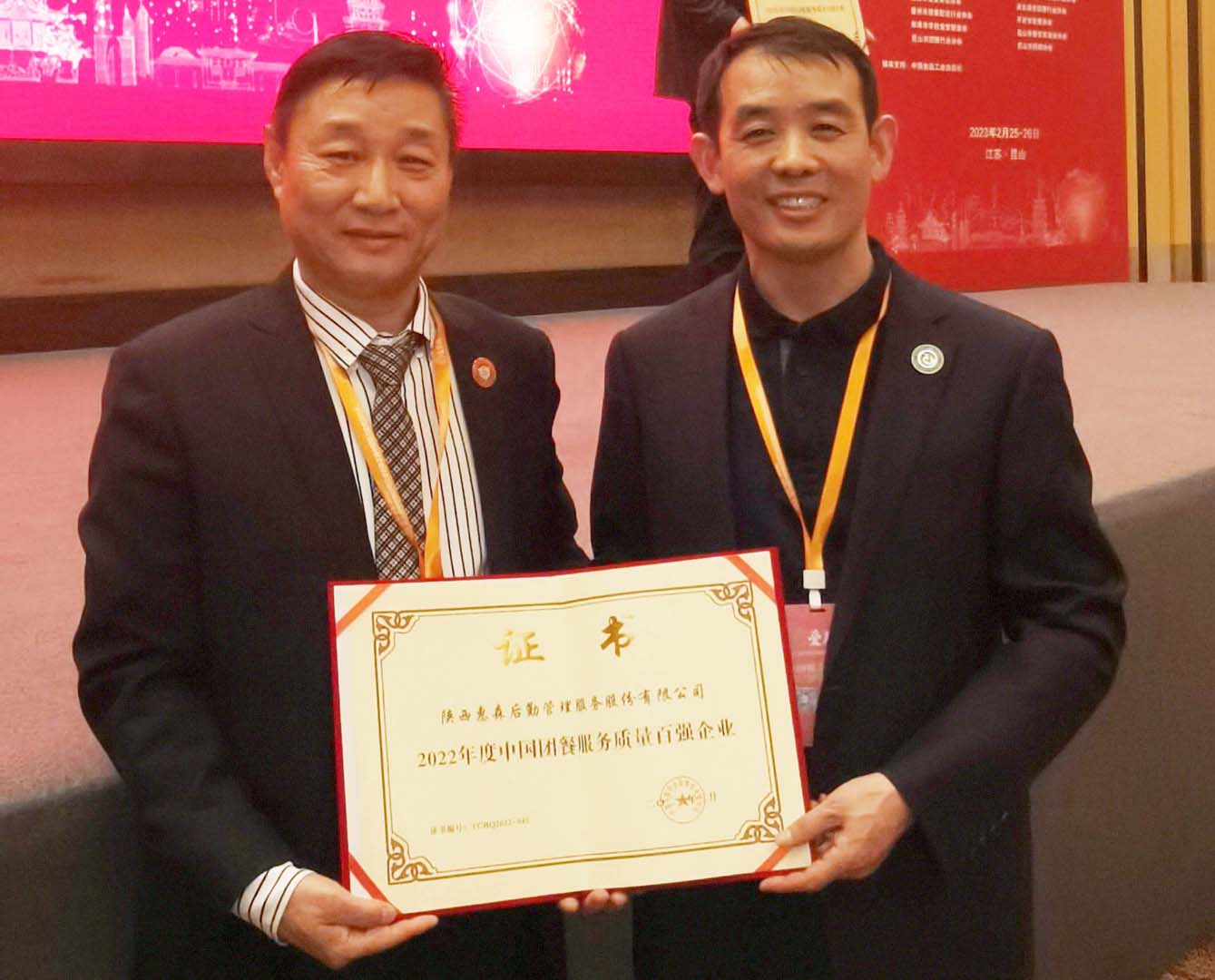 会议上,中国市场学会、全联农业产业商会、中国农业科学院农产品加工所会发布了《2022年度中国团餐服务质量百强企业》、《2022年度中国团餐服务优秀企业家》等多项研究成果报告,经多方位综合评定,陕西惠森后勤管理服务股份有限公司被大会评选为“2022年度中国团餐服务质量百强企业”,董事长刘京翰被评选为“2022年度中国团餐服务优秀企业家”。
