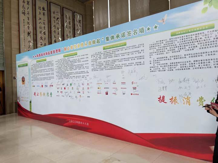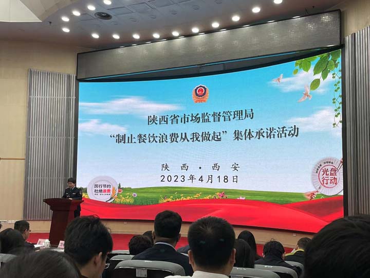 为进一步贯彻落实习近平总书记关于坚决制止餐饮浪费行为的重要指示精神,4月18日上午,由陕西省市场监管局组织的“制止餐饮浪费从我做起”集体承诺活动在省市场监管局成功召开。惠森公司作为餐饮服务企业积极响应参加了本次活动并签署制止餐饮浪费承诺书。