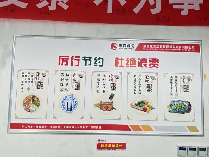 惠森公司作为餐饮行业中的一员,从未停下制止餐饮浪费的脚步,制度上修订食堂用餐制度,减少各方面粮食浪费;宣传上提高力度,餐厅中“厉行节约,杜绝浪费”标语随处可见;员工培训上树立浪费可耻、节约为荣的价值导向,增强员工节约意识;餐厅运营上,合理控制补充菜品的炒制量,优化菜单,在高质量保证餐食品质的同时提高了食材使用率。