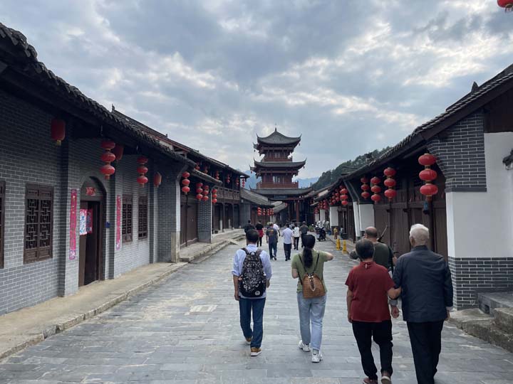 经过几个小时的车程,大巴最终到达了华阳古镇,华阳古镇始于秦晋,自汉唐以来,一直是陕南北入关中的第一捷径,是历史上著名的古道驿站。走进古镇,便有说不完、道不尽的历史和故事,穿街走巷,身边有溪水相伴,气势恢宏的长廊、层层叠起的台阶、栩栩如生的壁画,格外让人沉醉,走着走着仿佛走进那年代久远的汉唐梦境之中,看不够花红柳绿,道不尽诗情画意,每一处都值得放缓脚步细细打量,目之所及皆是浑然天成的水墨画卷,流逝的时光也慢了下来,大家三三两两徜徉在古镇街道上,观古镇风采品当地特色小吃。