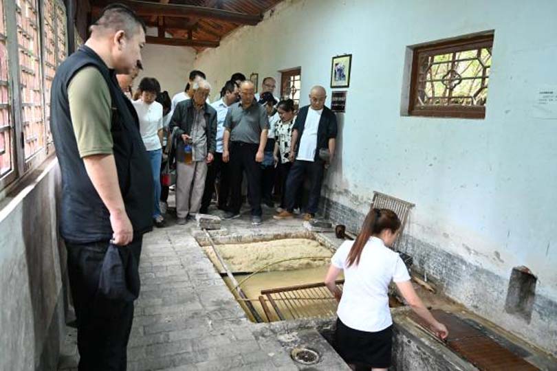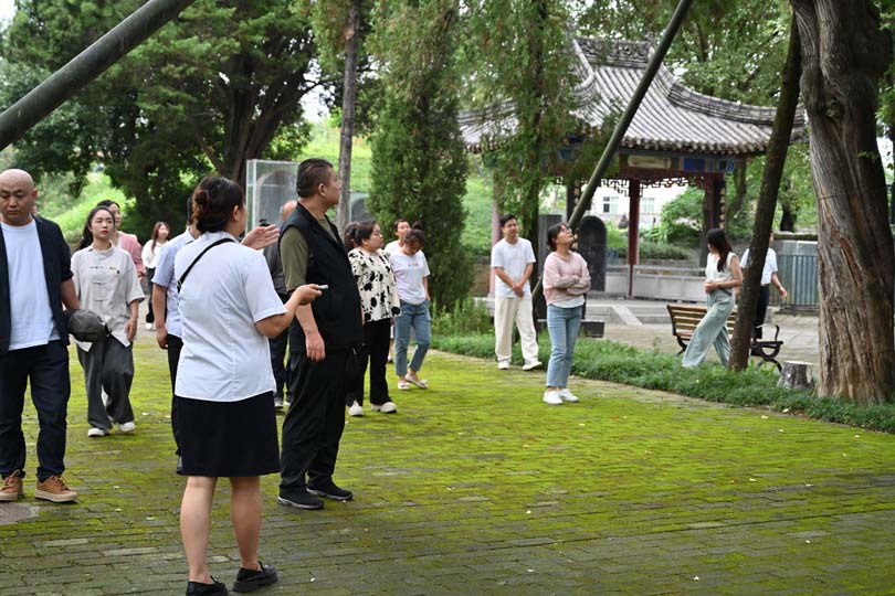 旅途的最后,大家来到了蔡伦墓祠景区,在景区讲解员的带领下依次参观了蔡侯祠的拜殿、献殿、正殿、蔡侯墓和纸文化博物馆。在蔡伦纸文化博物馆员工们从看到一棵棵茂盛的构树开始,亲眼目睹了构树皮由浸泡、蒸料、除青皮、浆灰、打料、捞纸、晾晒的全过程,工作人员将一池纸浆娴熟地抄捞成一张张纸,行云流水、一气呵成,引起一片惊叹,随后,大家踊跃地尝试了蔡侯纸晾晒的过程,也由衷地感叹伟大发明的艰辛不易。